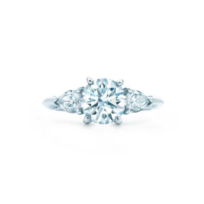 Proposal-ready 3-stone ring by Tiffany & Co. The setting features a 0.92ct G/VS1 central stone with two Pear-shaped side stone ... View Video